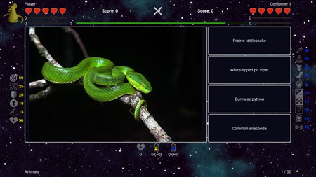 The quiz contains lots of interesting pictures and facts. By using hints and anti-hints, you can build your own game strategy: using hints to give correct answers or using more anti-hints to make your opponent’s game harder.