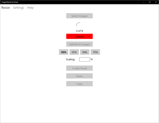 Features: - Send pictures as attachments in emails - Select pictures with "Share" function in context menu - Select multiple pictures at once - Decide how pictures are scaled - Summed up file size is displayed after scaling - Share pictures with other apps - Drag & Drop' to add images und and take results - Possibility to copy images to clipboard - NEW: Save images in specified directory - More image formats supported (.jpg, .png, .gif, .bmp, .tif)