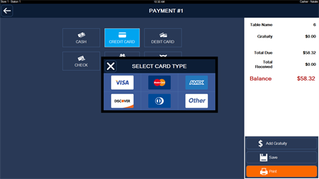 Payment - Pre print ticket before pay. - Display suggested gratuity amounts on the ticket. - Allow different payment methods on same ticket.