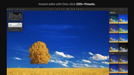 • Local adjustments. Make local changes with masks and brushes. Apply Radial, Gradient, Brush, Luminance, Depth masks. Insert custom overlays in the selected area.