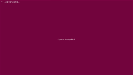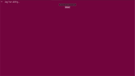 "Jag har aldrig" visas på skärmen följt av ett påstående.