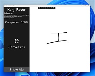 Learn to write all the Katakana in a fast-paced time trial game. Use the mouse, stylus, or your finger to draw the Katakana before the time runs out. If you complete the game, you should be fully able to write in Katakana. This is the second edition of the Japanese writing practice game series "Kanji Racer".