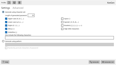 KeeGen is a password generator that supports various generation methods and options. Cryptographically secure, various possibilities to transfer generated passwords to other apps, and multiple passwords can be generated at once.