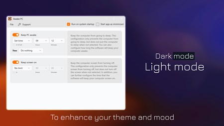 Keep your computer awake and keep the screen on for long running tasks. Operates independently of the system's default configurations, making it easier to fine-tune for use.