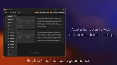 • Keep the computer awake with a timer or no time limit. • Configure shutdown, restart the computer, lock the screen, sleep after keeping the computer awake. • The configuration allows to keep the computer screen on by timer or unlimited. • Select the software to start automatically when the computer is started.