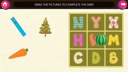 ** Games are designed to enhance following skills 1. Basic english 2. Letter recognition 3. Hand-eye coordination 4. Concentration 5. Visual perception 6. Vocabulary 7. Classification 8. Symmetry 9. Organizing 10. Memory 11. Matching 12. Attention to detail
