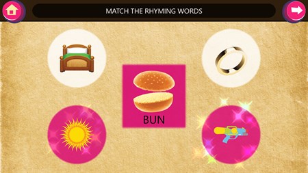 ** List of games Color balls, Vertical match, Bingo, Odd one out, Crossword, Complete The Words, Rhyming words, Letter grid, Word recognition