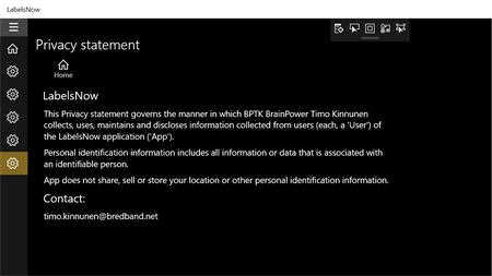 Print address labels. Add manually addresses or import addresses from Excel as tab-delimited .txt-file. Export addresses to Excel as tab-delimited .txt-file. Save and restore backup as -json-file. Print to printer address labels with Windows paper size of your choice (uses almost whole paper size without top and bottom edges as .pdf-file does). You can divide a paper up to 20 rows and 20 columns. Choose font size, color and weight.