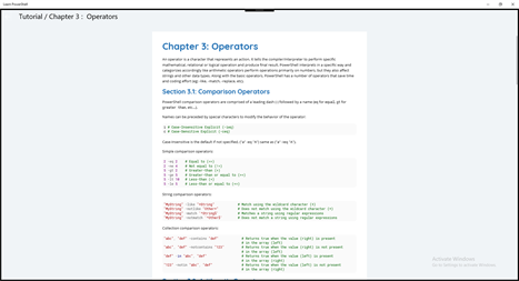 ######## Learn PowerShell ######## This app contains tutorials and reports for the all who want to Learn PowerShell. They can learn easily from this application. Following Chapters included in this Application: