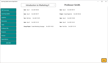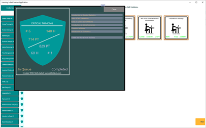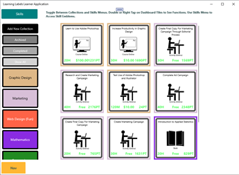 This app focuses on the learner or worker. Designed for a learner or worker to manage a 'Collection' of tasks (represented as learning labels). There is a built in search for learners to find learning or job labels and bring them into their collections.