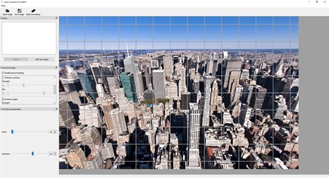 The Lens Corrector corrects/removes radial distortions (barrel distortions) which occur with wide angle lenses, such as used in GoPro Hero cameras, and fish eye lenses. Lens distortions are especially visible on aerial photography where straight lines, such as the horizon, show significant curvature. For instance GoPro Hero cameras show this effect when shooting in wide or ultra-wide mode.