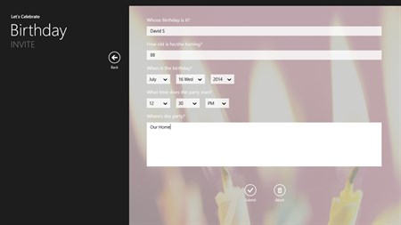Throwing a party? Or want to wish someone something? But you don't have enough time to write down the invites or greeting cards, or you're fed up of sending those boring messages, or you're just too lazy? We're here to help. This app helps you create a personalized digital invitation or greeting card, just the way you prefer it