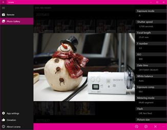 Remote shooting and contents access app for Sony's Wi-Fi camera devices. *** Please don't forget to UPDATE your camera firmware or camera app to the LATEST version, to receive full benefit of Locana app!! ***