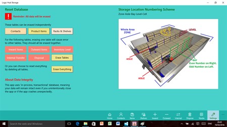 You can define up to 10 zones, 15 aisles, 10 bays, 8 levels and 10 cells - practically allowing huge combination of locational area configuration to store your inventories.