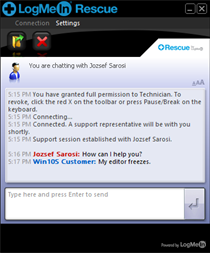 *ONLY DOWNLOAD IF DIRECTED TO DO SO BY A SUPPORT TECHNICIAN YOU TRUST* The LogMeIn123 Rescue app for Windows 10s allows support technicians to troubleshoot a problem you are having on your Windows 10s device. To use this application you must be receiving support from a technician who is using LogMeIn Rescue and will provide you a pin code to start the session.
