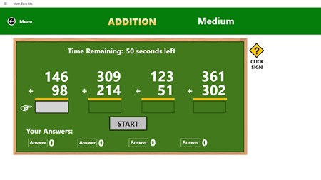Home Math Tutor for all ages. Math Zone is filled with endless random mathematical equations. It contains all the basic math problems that we use the most in school and life. Best of all it is an excellent tool for improving students memory as well as grown ups! This is even the perfect app for teachers to add to their PC in the classroom! Let children practice, test, and have fun learning before they take a record test in school. You can also use it as an evaluation tool to give you a much more honest idea of where the student or your child is currently at. It is separated into these areas: