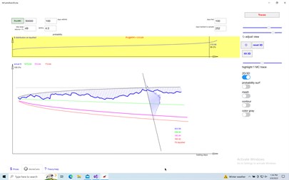Allows display of a sampling of monte carlo random walk paths before they are aggregated, allowing highlighting of individual paths; for teaching and example purposes. Detailed training and examples available online in the Help tab.