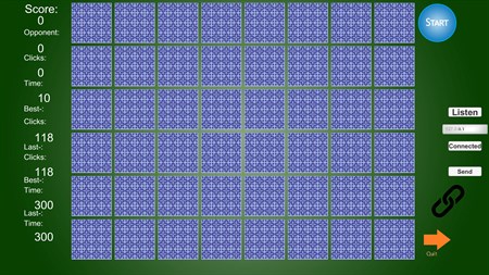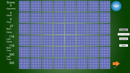 Find matching pairs of pictures of European Birds, in as few clicks or time as possible (solo). Or Play Memory Game Birds across the internet, LAN or (wireless) home network with a friend. Or Play via an UTP networking cable. Connect: First type both the IP address in the inputfield of your opponent during the Game. Then hit the [Enter] key. Then use both [Listen] to be clicked once during the process of making the Connection on both ends of the Connection in the two instances of the Program (required). Let you and your friend make sure you both typed in the IP address of the Player on the other end across the network in an inputfield and press both [Connect], virtually at the same time together. Some Modem Port forwarding Settings may be necessary for you to make (both only once, yielding for all of my internet Games then), to let this program work. See the manual on my website: https://hannopondaag.github.io and also discover your IP address there via a Link. UPnP IGD should be on. And make the rule for portforwarding in your Modems (only one rule for all of my programs required thus). Mind your Local IP Address corresponds with your setting on your Modem when using the WAN at a home network situation and set portforwarding then to use port 1200 on your Modem. No ads.
