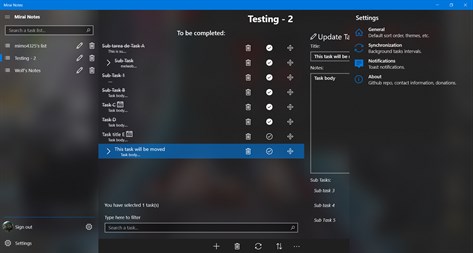 Features: * All the Google Task features: * Create task lists * Create task and subtasks * Delete/Update/Move tasks and subtasks * Etc... * Synchronization with Google Tasks * Offline support * Themes and accent colors * Task reminders * Password protection when the app starts * And many more...