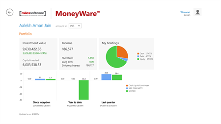 MoneyWare® Mobile App, contains sophisticated tools that enable ‘Wealth Management on the Go’ for relationship managers and clients. Intuitive, easy to use features facilitate collaboration and enable responsiveness in client interactions taking client engagement to the next level.