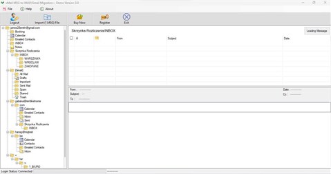 vMail MSG to IMAP Migration Tool generates the complete preview of IMAP or Gmail Email Account and Import Outlook Message(*.msg) File to IMAP or Gmail Email account. The application uploads the complete data of Outlook Message of MSG file including emails with attachment etc. The best thing about MSG to Gmail Migration utility is that it maintains the entire folder structure while performing the migration of IMAP or Gmail account. The application supports the Outlook Message (.msg) file of Outlook 2021, 2019, 2016, 2013, 2010 and all earlier version. Limitation: Demo version enables you to preview and import and migrate 30 items each selected folders. License Delivery: License will be delivered with 15 min to 72 hours. If you are purchasing software from Microsoft store then send purchase receipt to support email address then our team will be sent you license detail on your purchase email address.