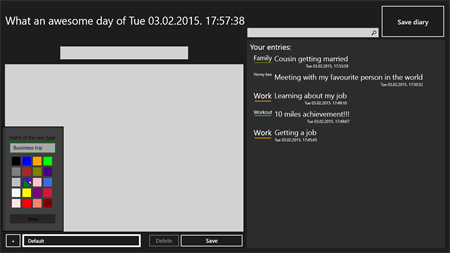 This is a simple and compact diary that can be used for documenting almost anything your brain can think of. App has a system of associating your entries with a name and color tag. Tagging your entries will help you find your entry.