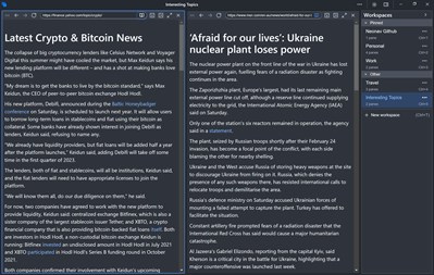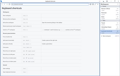 Multiple workspaces Group your websites into different workspaces and switch the context from the sidebar.