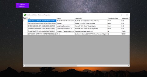 Net Speed Meter displays information regarding the Internet connection speed in plain sight, on your desktop. The meter is set to stay on top of all the other opened windows so that you don’t lose sight of the upload and download speeds.