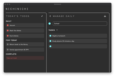 Nichinichi is a task management and habit tracking desktop app.