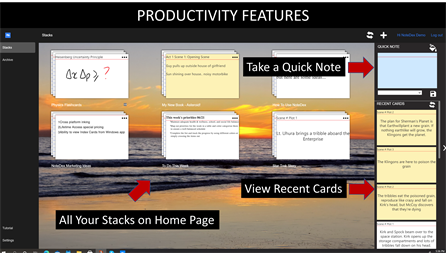 Become more creative, organized and productive. You can share stacks on the web and allow colleagues to collaborate and edit. Send a Stack as a PDF or export a single card as an image to send in an email. Create an unlimited number of stacks for all your projects.
