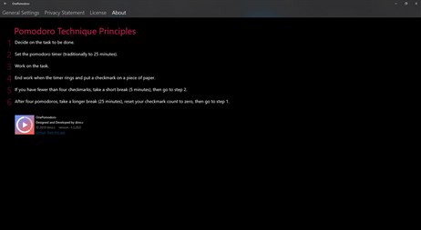 OnePomodoro is a simple and practical timer of Pomodoro Technique. It offers multiple interesting themes and offers Compact mode and FullScreen mode. It is also an open source program. You can find its source code at the following address:
