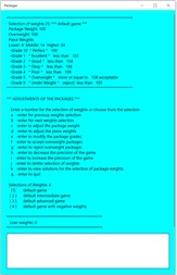 Number game. All text. The game is designed around the packaging industry where workers have a box on a scale and can select items to fill the box, adding and removing items. The box may not be less than the package weight specification. In an effort against time a player can move numbers between two lists to equal the sum of the weights in the box with the package weight specification. A comment from a supervisor is displayed when a player indicates that the box is finished.