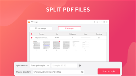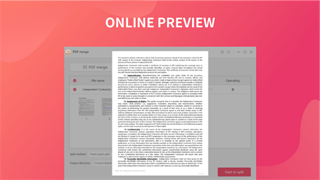 PDF merge is a tool for merging PDF files and extracting pages from PDF documents. The software provides "Merge PDF" and "Split PDF" functions. "Merge PDF" supports merging multiple PDF files or multiple pages of a single PDF file into one PDF document. There are multiple merging methods to choose from. The size of each page inside is different, and it can be set to the same size as the first sheet or A4 size; "Split PDF" supports extracting specific pages from a PDF document to form a new PDF document. At the same time, you can preview the pages separately, and there are multiple split options.