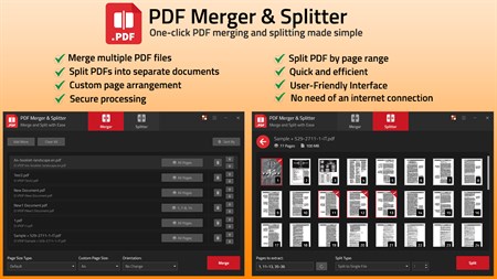 Experience the convenience and versatility of PDF Merger & Splitter for all your PDF management needs. Download now and simplify your workflow today!