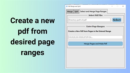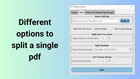 PDF Merge *Merge multiple pdf files you enter into a single pdf. Split PDF *Separate your PDF file into two new pdfs from the page you specified. *Separate your PDF file into multiple PDFs from the page ranges you specify *Import only the pages between two pages from your PDF File as a new pdf Select and Merge PDF * Obtain a new pdf by combining the page ranges you enter in your pdf file.