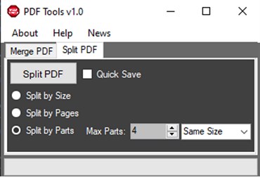 Do you need to merge or split your pdfs? This program will solve your problems! With the option to split PDF by maximum file size, you will save time with workarounds! Just select the file, enter the maximum size you want, and your file will be transformed into several parts, containing the description of the part in the file name, it's very easy and fast! Your file will not leave your computer, only you will have access to your file and it does not need to be sent to the internet, information security in the first place! Warning: Does not work on encrypted or password-protected files New tools will be added to the program in the future