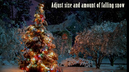 Peaceful Snowfall HD in full screen HD with gorgeous Winter Scenes coupled with real like falling snow, with a choice of ambient and Christmas music and snowfall SFX.