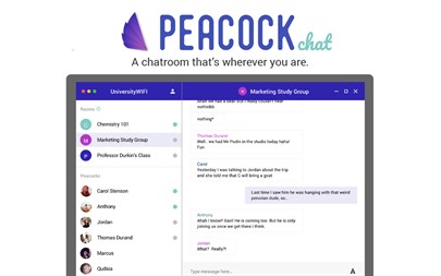 Peacock Chat is a chatroom that's wherever you are. Connect with people who are on the same WIFI network as you. Meet and chat with people in your class, dorm, and library. With Peacock Chat you'll be able to see everyone on your WIFI network and start individual or group conversations with all of them.