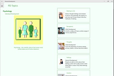Personal development is considered from the point of view of assertive people in the community. The six sections begin with an example of a typical individual personal development plan and paves the way to life skills, business agenda, life philosophy, psychology and education.