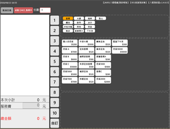 偉盟餐飲系統---1.5.4.1版 產品特色:可以自由調整餐點名稱、價格、口味備註及點餐時菜單擺設順序;自行更改樓層區域,調整桌子顯示數量、位置及編號;多種折扣方式,如:單筆折扣、折讓和整張折扣、折讓;多種付款方式,如:現金、信用卡、現金禮劵、商品禮劵、抵用劵、支付寶、微信、紅利抵用等,客戶可自由選擇需要的付款方式,畫面則會立即呈現。
