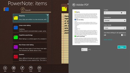 Create/Edit and Store notes quickly in a fancy way? Find notes quickly with instant searching and simple tags? Filter and organize notes quickly with priority stickers? Have your notes everywhere? Need to print all your notes instantly? Power Note is the solution! Using snapped mode of windows 8 now, you can get notes and working at the same time. If you are tired from the advertisements, just buy the paid version.