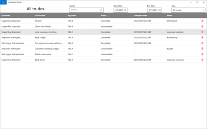 The Priority To-Do List App can break down your work into priority tasks. All tasks are clear at a glance, including those that have been completed and those that have not been completed. Each quadrant manages its own to-do list individually.