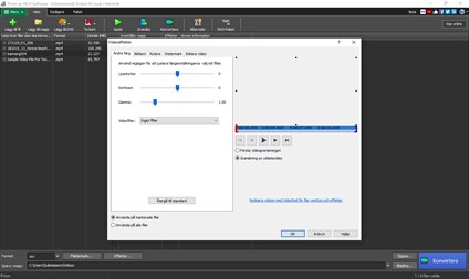 Prism videokonverterare. Funktioner inkluderar: • Prism kan konvertera populära format som WMV, MP4, AVI, MOV, MPG, VOB, ASF och alla videoformat som har en DirectShow-baserad codec • Dra och släpp enkelt videofiler eller välj en hel mapp • Lägg till videoeffekter som vattenstämplar, textöverlägg, filter och videorotation • Justera videoens ljusstyrka och kontrast • Förhandsgranska din video och eventuella ändringar som gjorts innan den konverteras • Gör ändringar i dina utdatainställningar