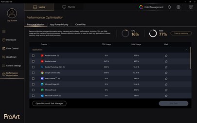 ProArt Creator Hub software is a tool designed to help professionals optimize system settings, calibrate colors, monitor performance and quickly access vital apps. *Only ASUS ProArt Series support this app, supporting devices may vary, for further details, please visit ASUS ProArt official website: https://www.asus.com/ProArt/ProArt-Creator-Hub/