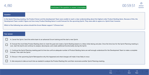 1/ A simulator (with two modes: Exam and learning) of 80 Questions (with answers) mirrors the actual PSM 1 exam while allowing you to hone and measure every aspect of your test-taking ability.