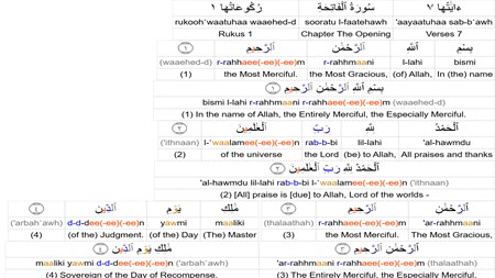 Qur'an with its Arabic, transliteration and translation word by word and verse by verse for learning, studying, research, memorization, reflection and mastery of tajweed.