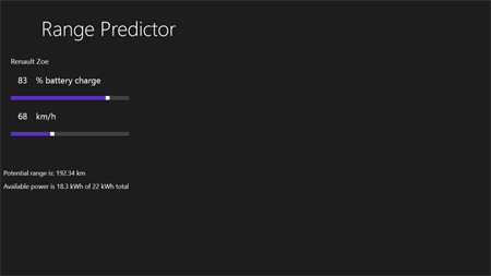 Simple calculator to help calculate the expected range of your electric car based on the battery state of charge and your expected average power usage. It can also show the range in a map from your current location or from another location of your choosing.