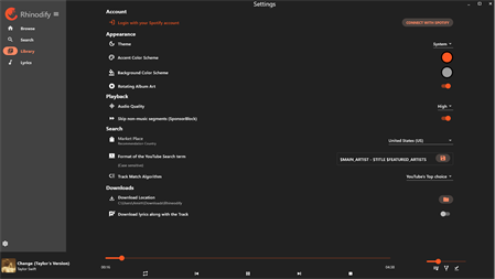 *CAUTION* To avoid copyright problems, Rhinodify will download your songs from YouTube servers in the background.