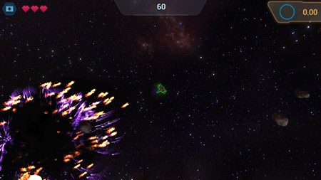 The game is very simple, but complicated at the same time. It consists of a screen where rocks will appear, when they are destroyed they will leave smaller and more numerous rocks. Destroying the rocks is complicated by the control of the ship, it can turn like a tank and propel itself forward or backward taking force in the direction it is facing.