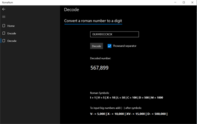 A simple but powerful app to convert digits to roman numbers and vice versa.